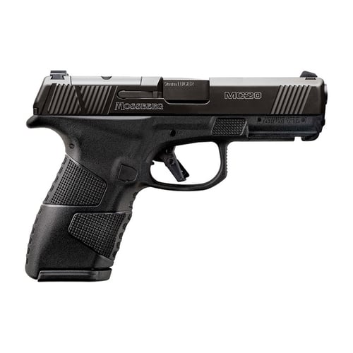 Weighing only 21 oz unloaded, its ultra-slim 1.10-inch width and 7.1-inch length make it ideal for everyday carry. The optics-ready slide accepts Shield RMS-footprint micro red dots directly, while TRUGLO Tritium Pro night sights deliver fast, self-illuminating target acquisition in any lighting. The glass-reinforced polymer frame provides aggressive texturing and a comfortable palm swell grip, paired with a flat-face trigger (~5.5 lb pull) and integrated blade safety. It ships with two high-capacity magazines (14-round flush and 16-round extended) for versatile 14+1 or 16+1 options. With a front Picatinny rail, reversible mag release, and proven reliability, the Mossberg MC2c 89033 excels in concealed carry, home defense, and range use — offering modern features and exceptional value in a blacked-out compact 9mm platform.